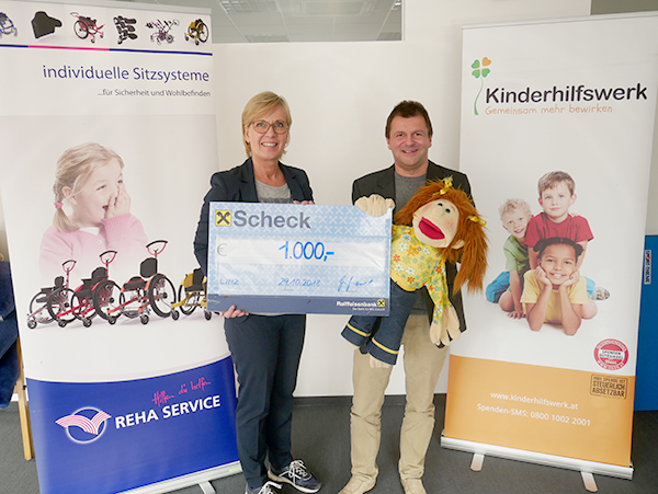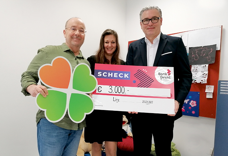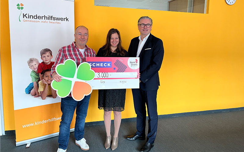 Die Bank Direkt der Raiffeisenlandesbank OÖ AG unterstützt Therapiearbeit für Kinder und Jugendliche und spendet 3.000 Euro an das Kinderhilfswerk Linz.