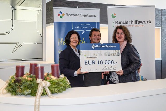 Bacher Systems spendet 10.000 Euro für das Kinderhilfswerk.