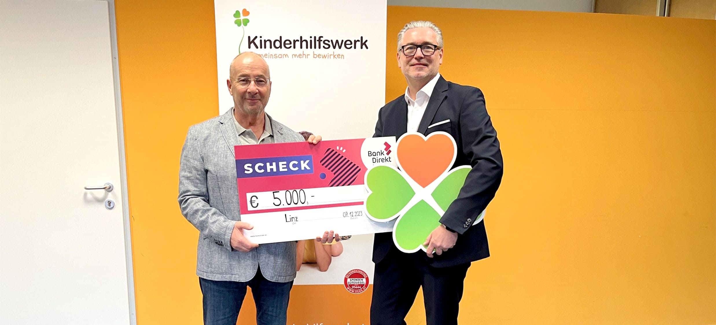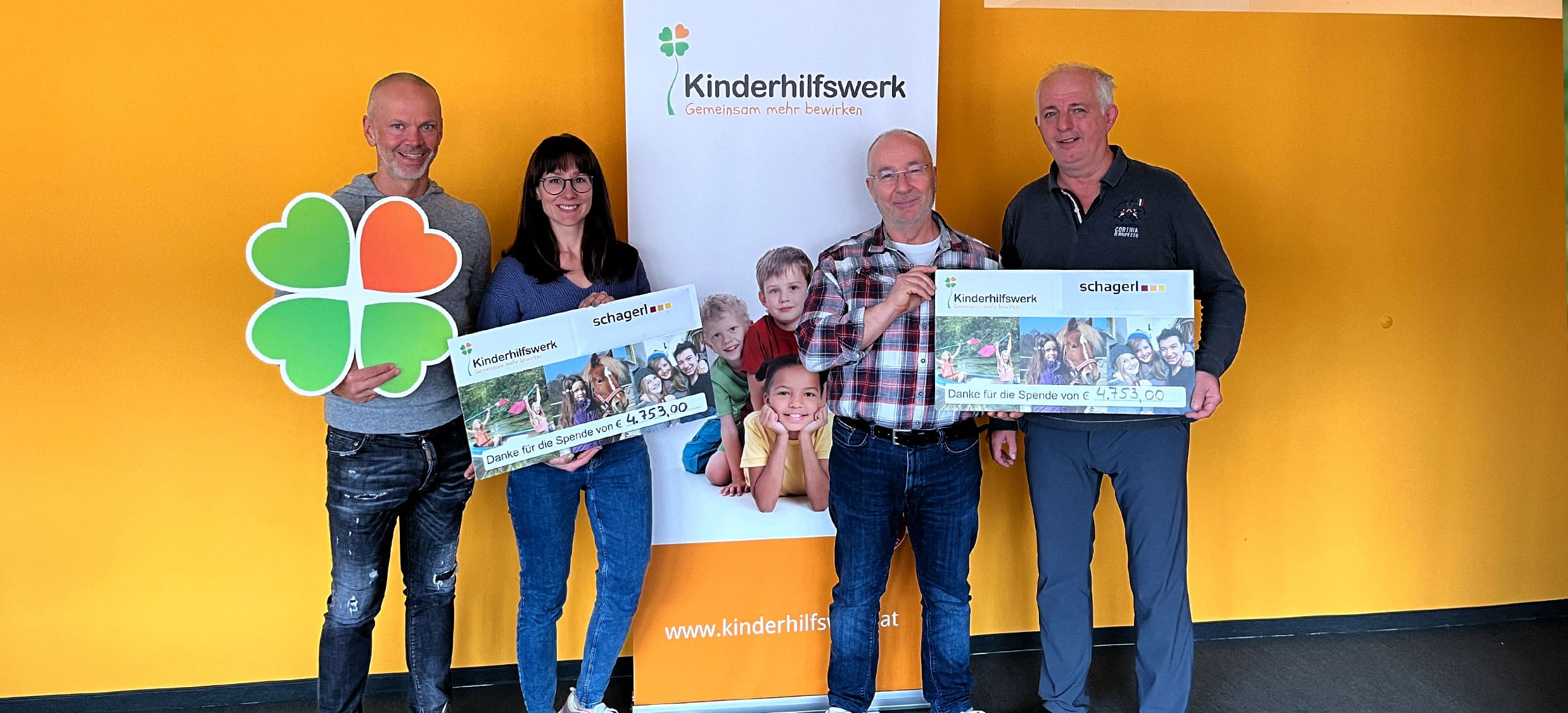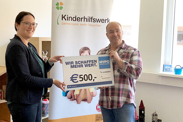 Anlässlich seines 50. Geburtstags sammelte Thomas Obran, Geschäftsführer der Firma Schagerl Türendirekt GmbH, Spenden für das Kinderhilfswerk. Die Spendensumme von knapp 4.750 Euro wurde vom zweiten Geschäftsführer, Rudolf Schagerl, verdoppelt und gemeinsam mit Thomas Obran dem Kinderhilfswerk übergeben.